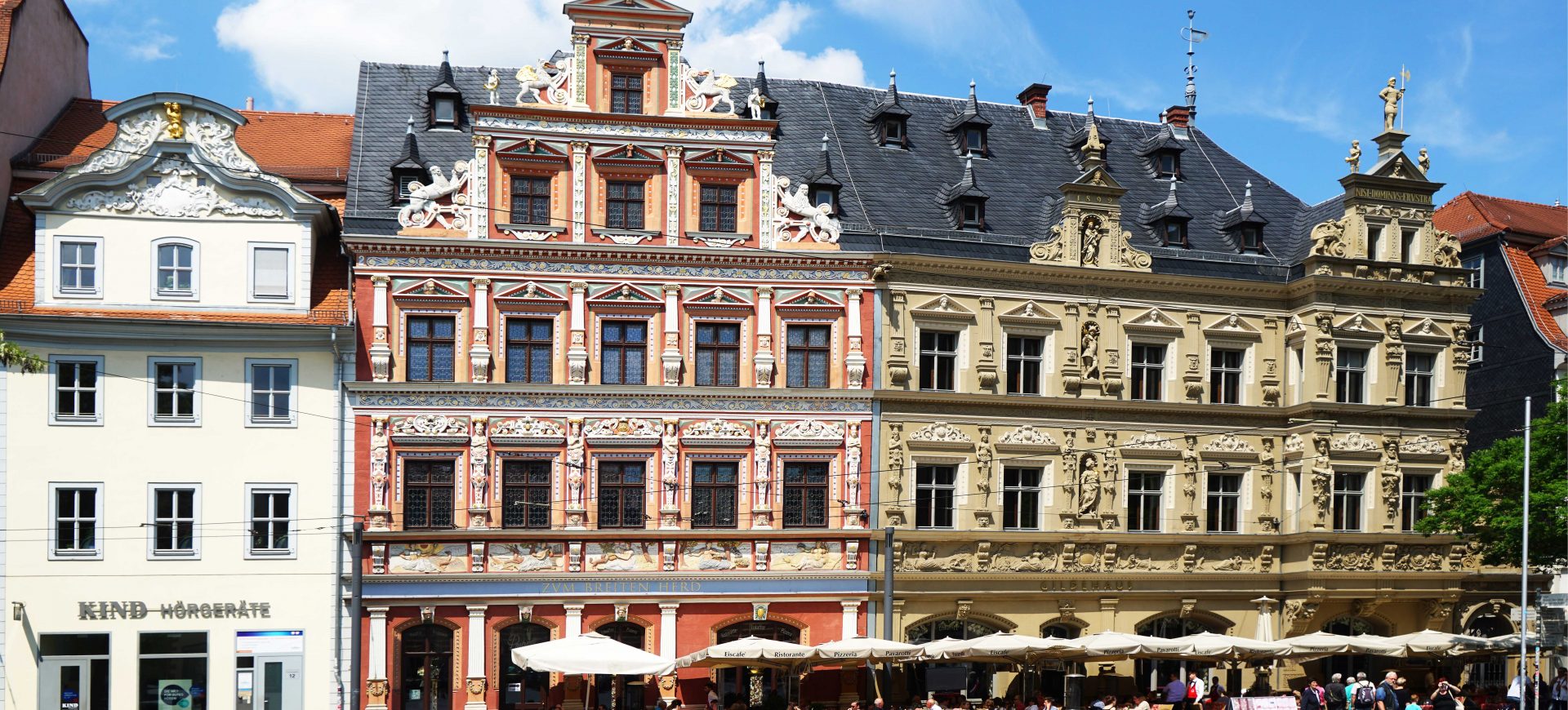 Der heutige Tag ist der thüringischen Hauptstadt Erfurt gewidmet. Im Mittelalter zählte die stets nach Reichsfreiheit strebende Kurmainzer Stadt zu den volkreichsten des deutschen Sprachraums. Neben einigen Altstadtquartieren haben sich aus dieser Zeit vor allem zahlreiche Kirchen erhalten. Am eindrucksvollsten ist natürlich die eindrucksvolle Gruppe aus Dom und Severikirche, die wie eine Stadtkrone über dem weiten Domplatz thront und die wir eingehend besichtigen werden. Aus barocker Zeit ist die gewaltige Zitadelle Petersberg über der Stadt erhalten geblieben, auch dort werden wir uns umsehen, zumal das Gelände schon zu den stadtnahen Außenstellen der Bundesgartenschau zählt. Deren Herz ist das ega-Gelände, wo auf 36 Hektar rund um das Deutsche Gartenbaumuseum ein blühendes Fest gefeiert wird.