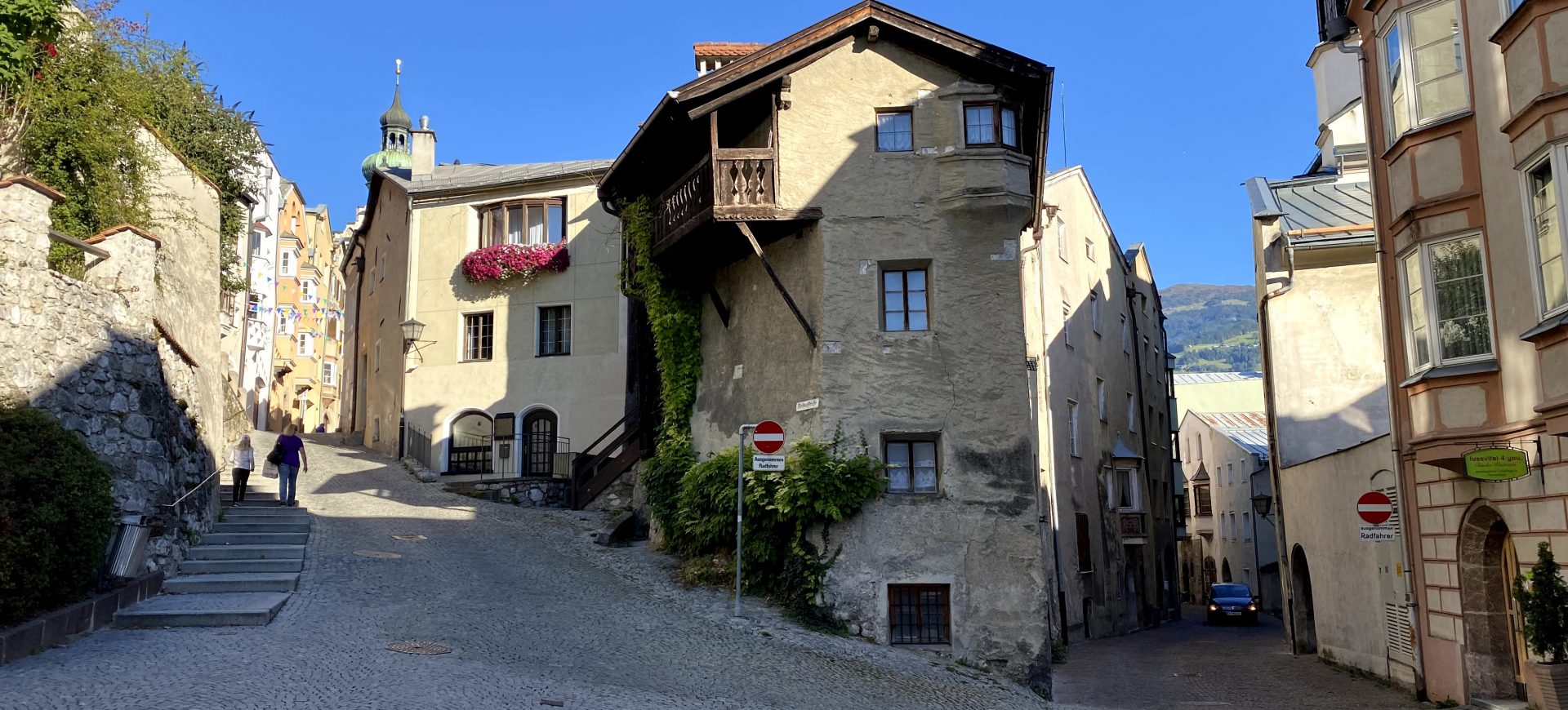 Auf dem Rückweg von Matrei nach Marktheidenfeld bleibt noch ausreichend Zeit, um zwei Städte kennenzulernen, die viel zu selten aufgesucht werden: Hall in Tirol und Schwaz. Die beiden konkurrieren um den Ruhm, die schönsten Altstädte in Tirol ihr Eigen zu nennen und deswegen schauen wir sie einfach beide an. Hall verdankt seinen Wohlstand in alter Zeit der Salzgewinnung und der Tiroler Münze, Schwaz dagegen dem Bergbau, der Kupfer und Silber ans Tageslicht förderte.