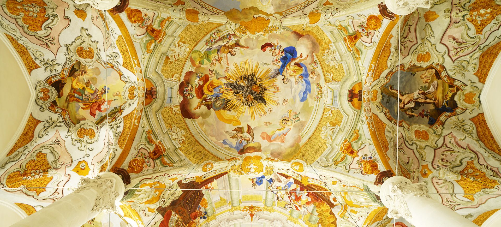 Zunächst fahren wir nach Klausen und lernen die kleine alte Stadt, die einst ein Sperrriegel des engen Eisacktals war, bei einem Spaziergang kennen. Hoch über Klausen liegt die Klosterfestung Säben mit ihren drei Kirchen. Der heute von Benediktinerinnen bewohnte Komplex war schon im 4. Jahrhundert Südtirols erster Bichofssitz. Wir nehmen aber Abstand vom mühsamen Aufstieg und begeben uns nach Feldthurns, um die einstige Sommerresidenz der Brixener Fürstbischöfe, Schloss Velthurns, zu besichtigen. Der unscheinbare Bau birgt eine der schönsten hölzernen Renaissancedecken des deutschen Sprachraums.